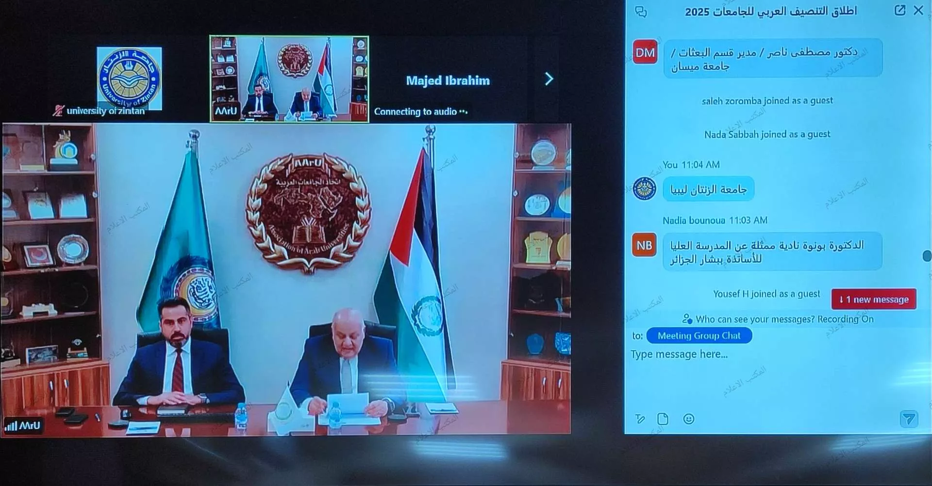 جامعة الزنتان تشارك عبر الزووم في الإعلان عن التصنيف العربي للجامعات.