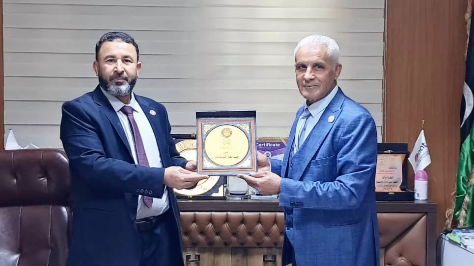 وفي ختام الزيارة، تم بكريم السيد مدير مركز ضمان الجودة والاعتماد المؤسسي، بدرع اهداء من جامعة الزنتان تقديرًا لجهوده ودوره البارز في دعم مؤسسات التعليم العالي، وتعزيز ثقافة الجودة والاعتماد، بما يسهم في تحسين الأداء المؤسسي وترسيخ مبادئ التميز والاستدامة.